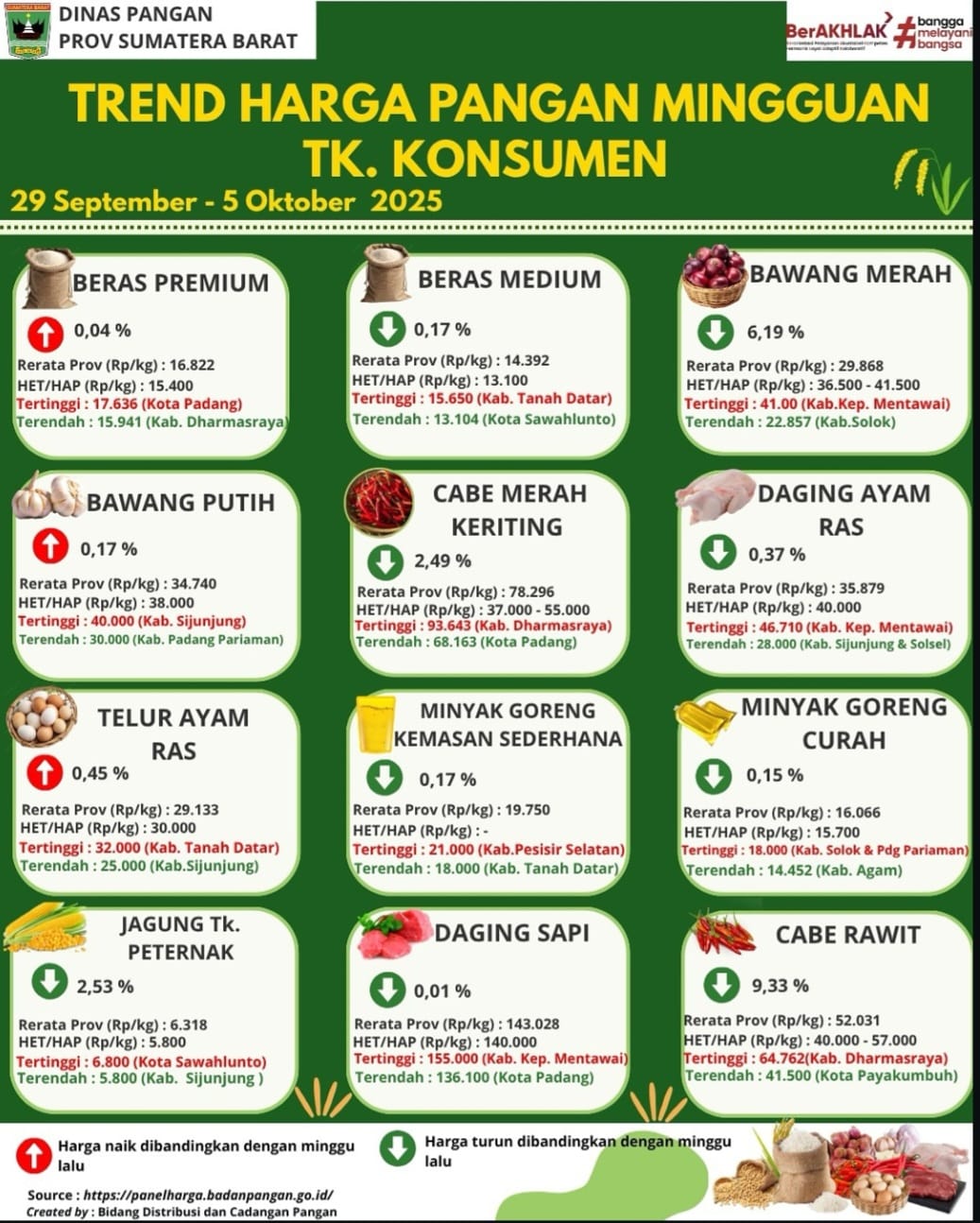 TREND HARGA PANGAN MINGGUAN TK. KONSUMEN 29 SEPTEMBER - 5 OKTOBER 2025